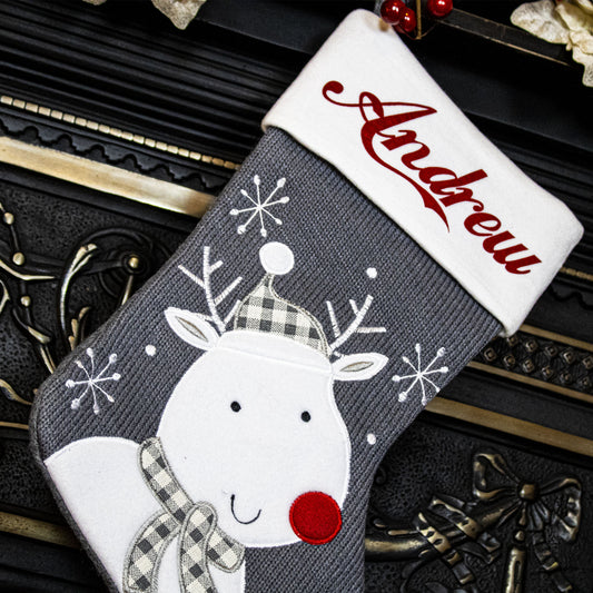 Grey and Red Rudolph Christmas Stocking