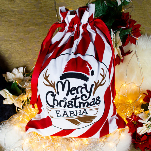 Merry Christmas Candy Cane Stripe Christmas Sack
