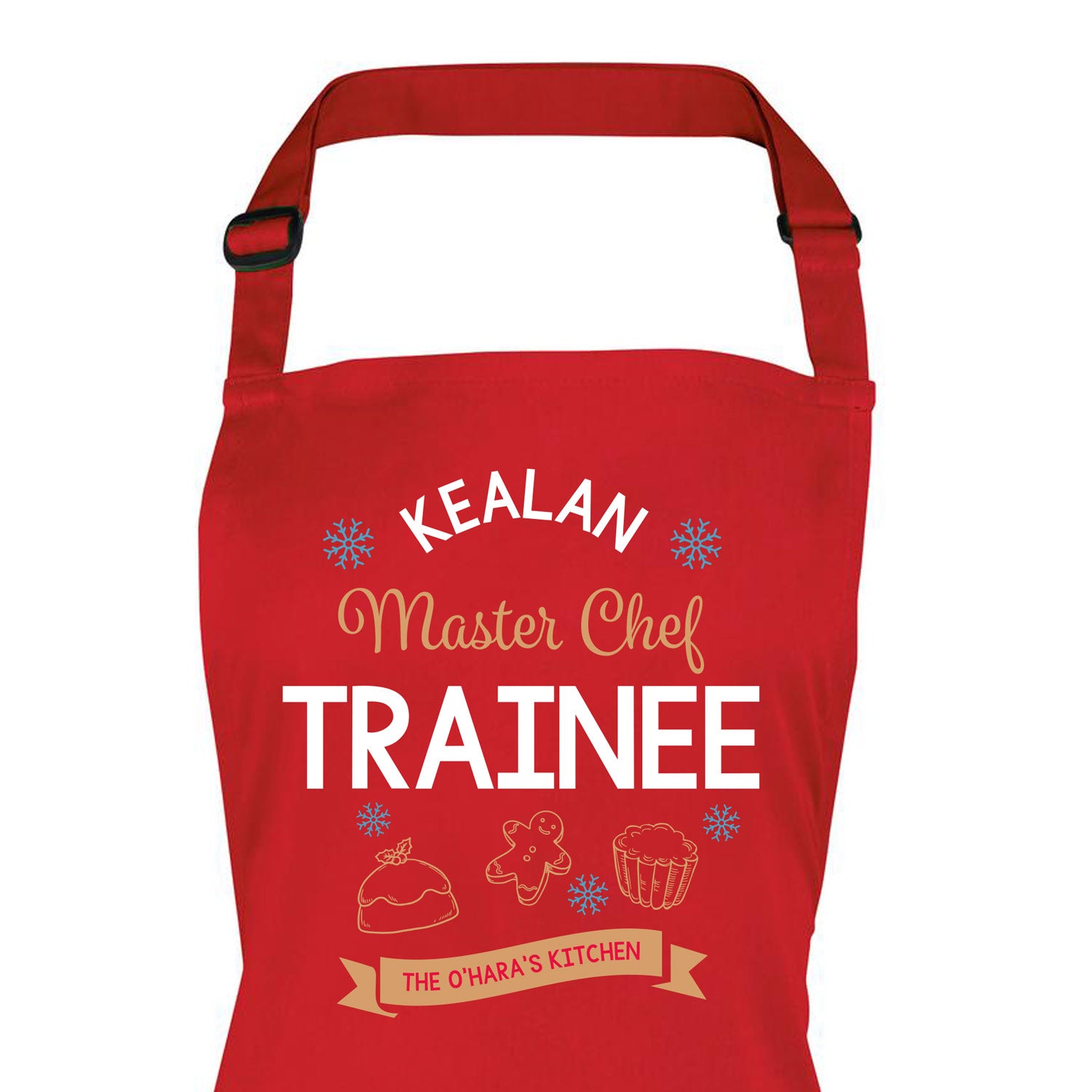 Make this Christmas extra special with this perfect gift for little cooks! Surprise your chef-in-training with our Children's Master Chef Trainee Personalised Christmas Apron - perfect for aspiring top-notch cooks! Let them show off their cooking skills in style! Bon appétit!