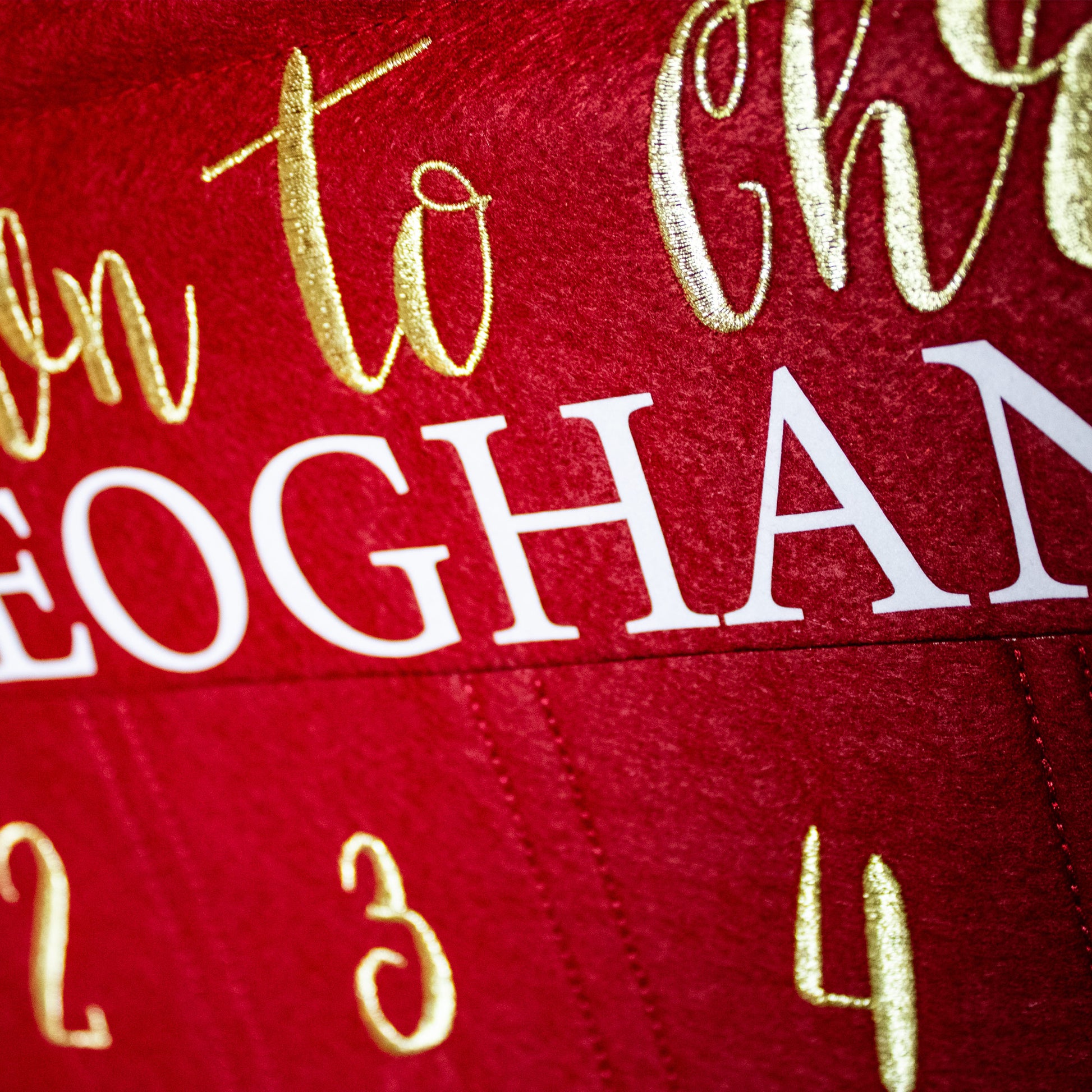 We use a contrast flock colour to ensure enhanced visibility between the stocking and name.