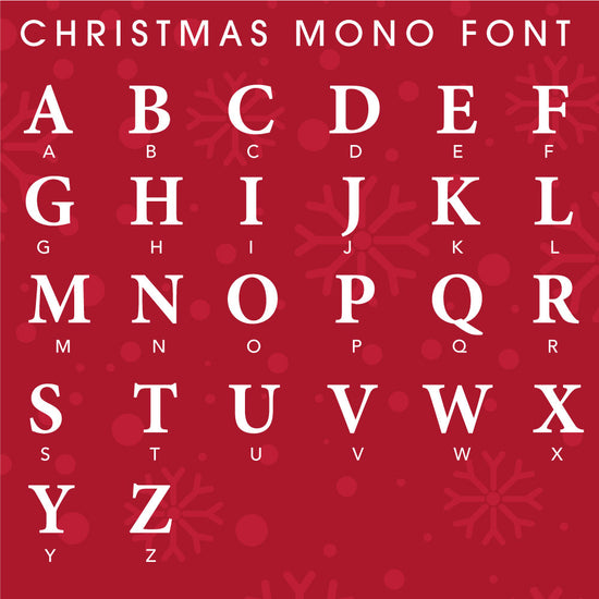 While utilising the personalisation area to its maximum potential, our designer has also created our very own classic and timeless, Christmas-inspired font.