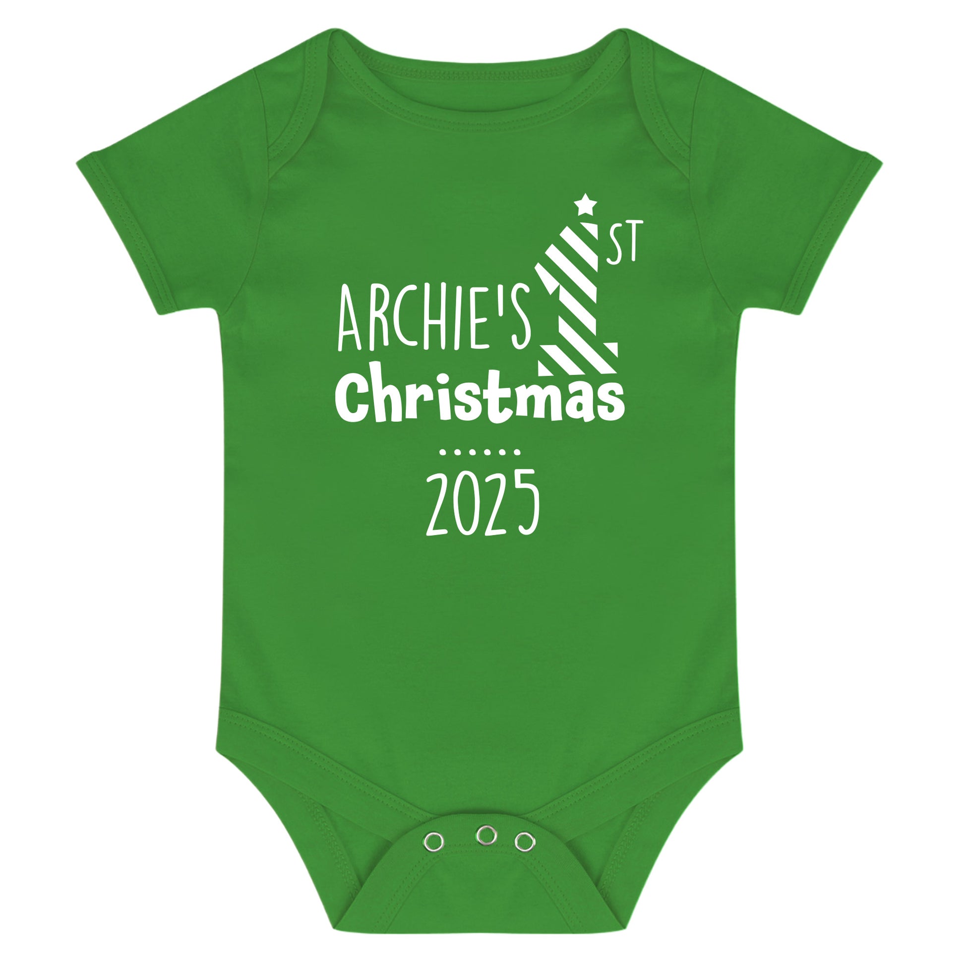 This Personalised Babies First Christmas Vest is the perfect look for your little one's first holiday season! Made from snuggly green fabric, this baby vest features an adorable candy cane 1 design for a sweet and festive look. Get your holiday pic ready — it's going to be a memorable one!