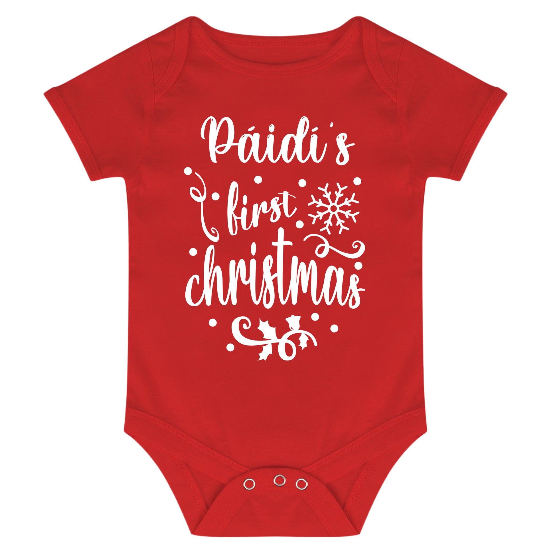 Make this Christmas one to remember with this luxurious personalised red baby vest. Perfect for displaying a newborn's first Christmas, this special vest will add an elegant yet festive edge to a baby's wardrobe. This unique garment features a Christmas-themed design and can be personalised with the baby's name, adding an extra-special touch. Create a Christmas memory that will last a lifetime with this exclusive piece.